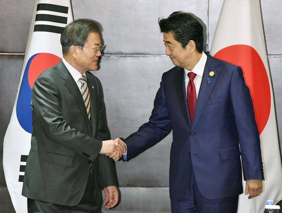 紧张局势持续数月,韩国的月亮,日本的安倍晋三首次会面