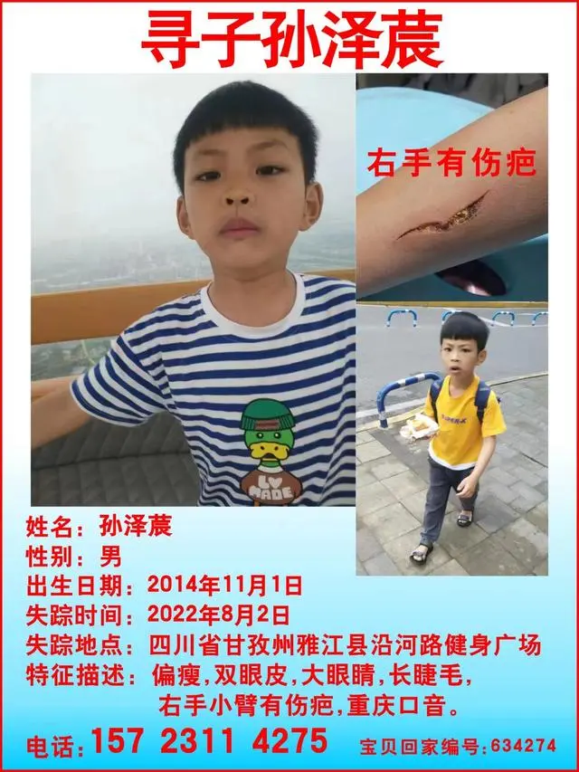 据孙先生说,他是重庆九坡人。今年7月7日,他带着8岁的儿子孙泽轩去四川省甘孜州雅江县探亲。他预计将于8月7日返回重庆。