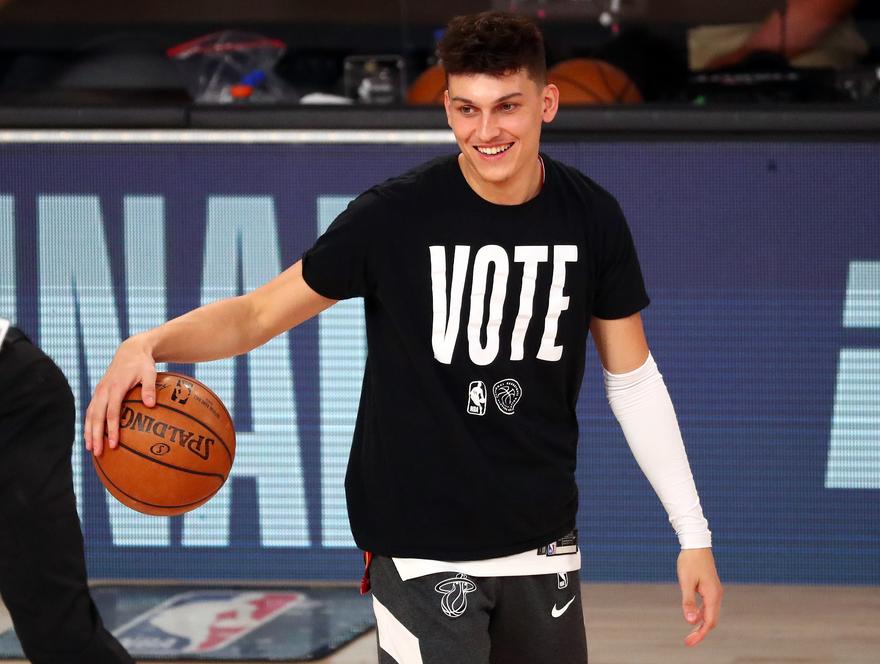 吉米-巴特勒(17分),杰-克劳德(14分),泰勒-海罗(14分)和阿德巴约(13分)也为热火贡献了两位数的得分,而他在三分球中36投7中。