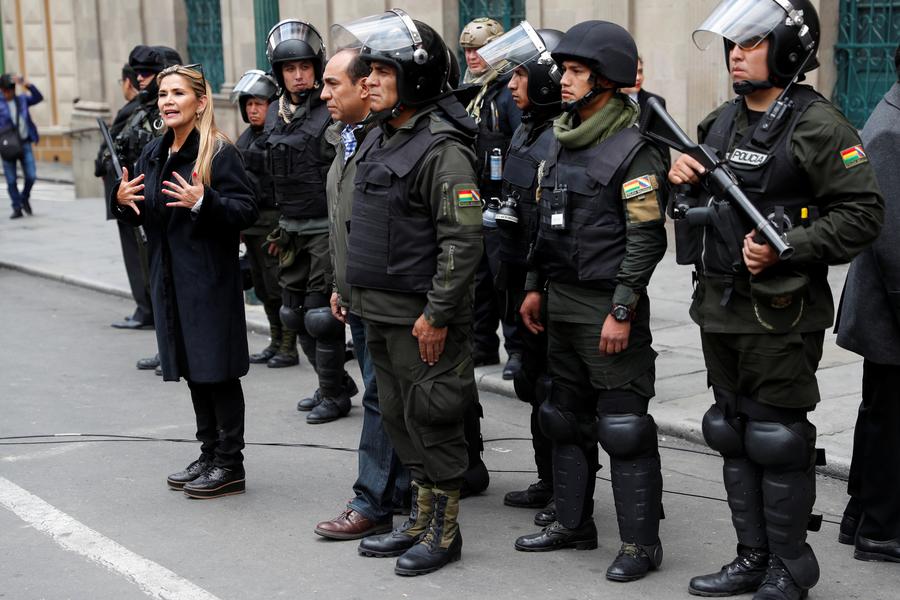 玻利维亚新任临时总统星期三保证尽快举行新的选举,并谴责了已故领导人埃沃•莫拉莱斯(Evo Morales)的不满支持者的“复仇”行为。