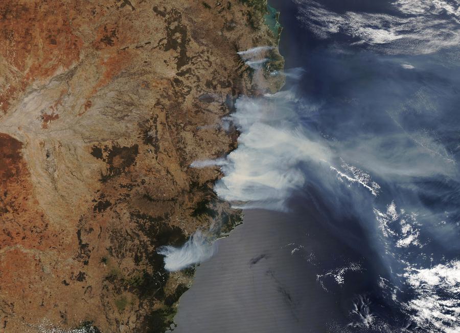 星期天,气温上升,雷击和阵风进一步加剧了澳大利亚两岸的火灾危险,因为该国已经与120多个丛林大火进行战斗,消防员日夜努力遏制它们。